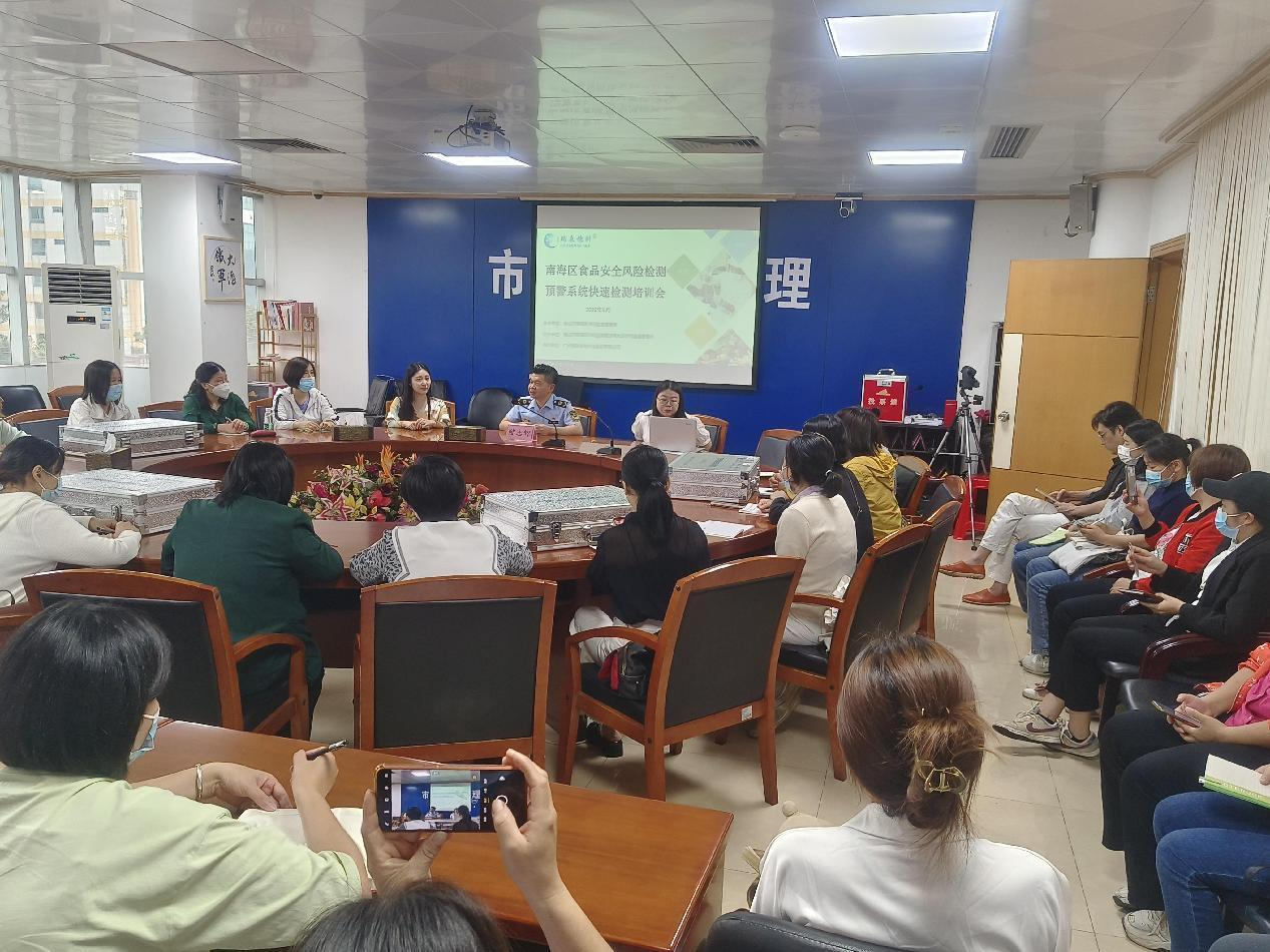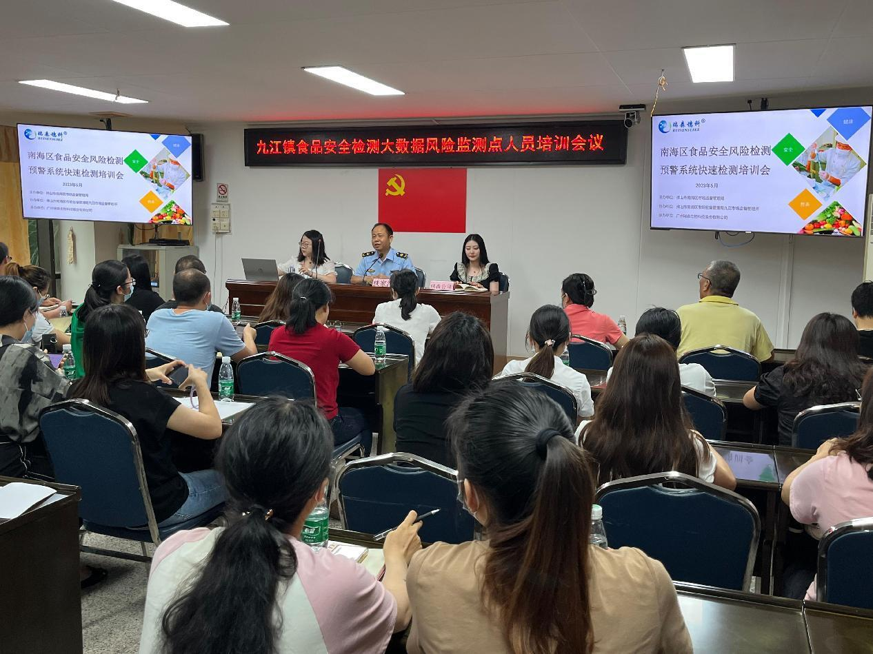 為確保2023年“南海區(qū)食品安全檢測大數(shù)據(jù)風(fēng)險分析系統(tǒng)保障食品安全工作”項目的順利開展,佛山市南海區(qū)市場監(jiān)督管理局委托廣州市瑞森生物科技股份有限公司會同南海區(qū)各鎮(zhèn)(街道)市場監(jiān)督管理所于2023年5月5日-19日期間為南海區(qū)全區(qū)各食品安全風(fēng)險監(jiān)測點人員開展食用農(nóng)產(chǎn)品農(nóng)藥殘留快速檢測培訓(xùn)工作。本次培訓(xùn)活動由南海區(qū)各鎮(zhèn)(街道)市場監(jiān)督管理所與瑞森生物公司共同組織開展。培訓(xùn)活動規(guī)模龐大,參加培訓(xùn)的人員為南海區(qū)全區(qū)各食品安全檢測大數(shù)據(jù)風(fēng)險分析系統(tǒng)保障食品安全工作項目風(fēng)險檢測點相關(guān)操作人員及負(fù)責(zé)人,培訓(xùn)對象包括了南海區(qū)全區(qū)7個鎮(zhèn)街954個自檢單位(含:農(nóng)貿(mào)市場,超市,配送企業(yè),酒店,餐飲店和學(xué)校,醫(yī)院,機(jī)關(guān)單位,敬老院等單位食堂)。