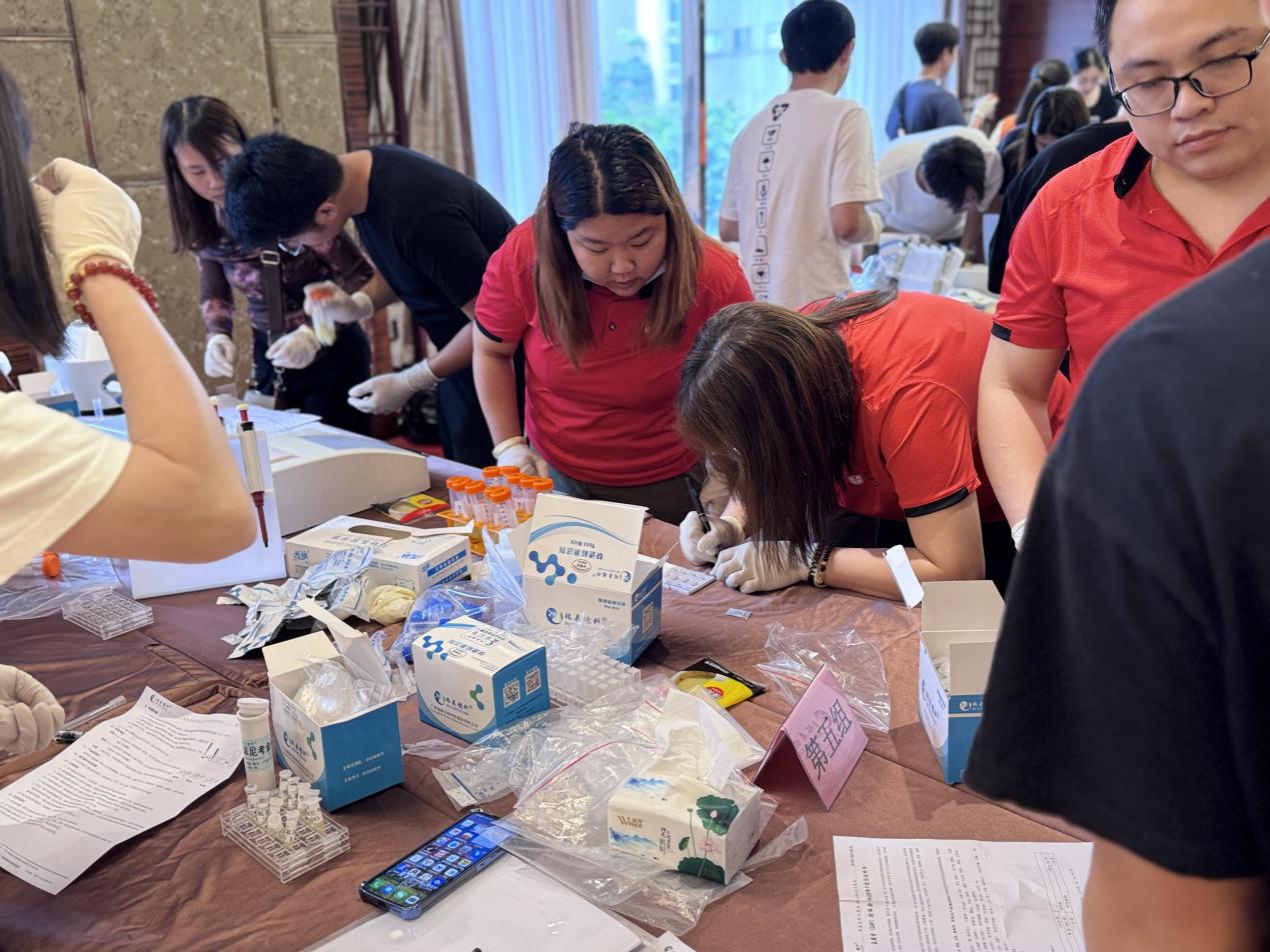 為實現(xiàn)“人人能操作、個個能過關”,廣州瑞森生物派出十余名技術人員開展分組實操培訓。通過“現(xiàn)場演示+實機操作+分組考核”的模式,確保每位參訓人員都能獨立完成快速檢測操作流程,真正做到熟練掌握快檢技術、持證上崗,進一步促進了中山市后續(xù)基層快檢工作的規(guī)范性與實效性,為地區(qū)食品安全保障提供了堅實的技術基礎。